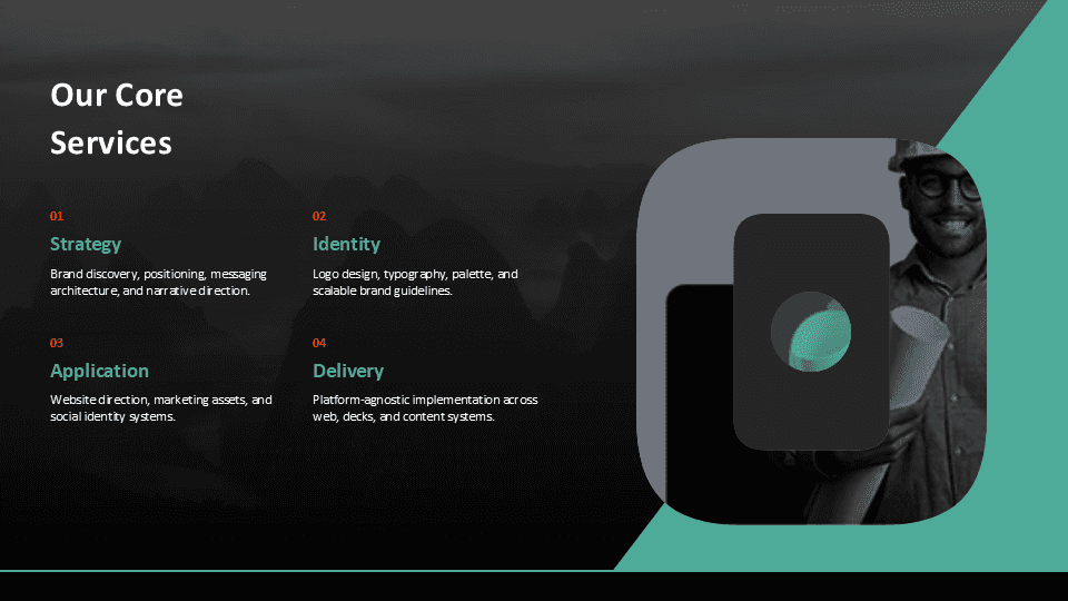 We begin by understanding the offer and the industry category it operates in. From there, we define the ideal customer profile, how that audience behaves, and how to speak to them effectively. This understanding informs our decision making in visual language and brand identity.